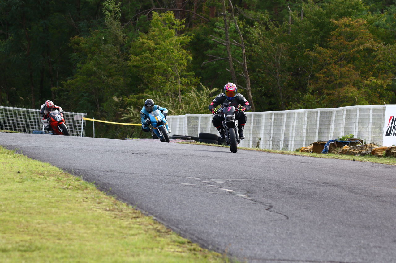 今回は落ち着いたレース運びでホールショットを決めて1コーナーへ