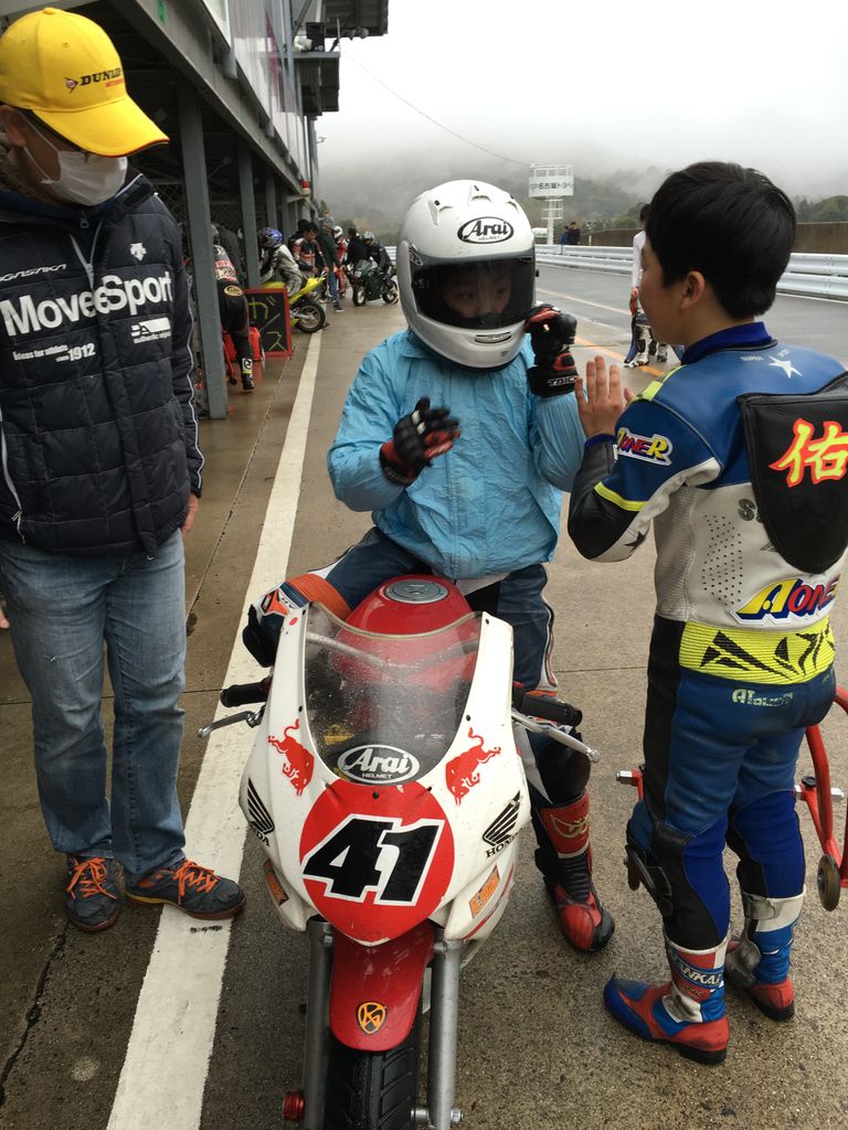 2人とも三年前のキッズバイクレースに参戦して以来の幸田サーキット