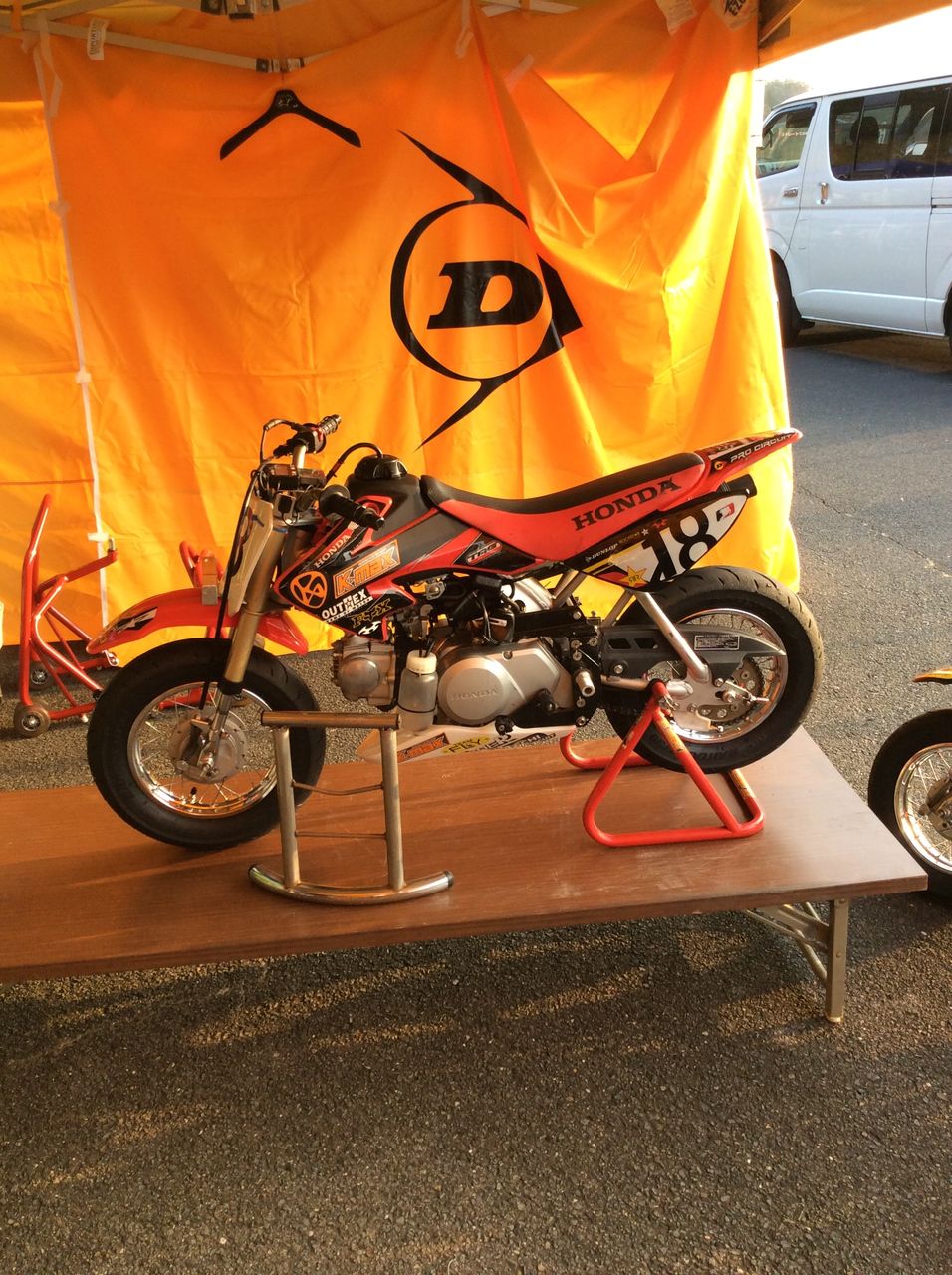 レース当日はOUTEXさんのカスタムパーツでドレスアップされたグロムも展示されました。